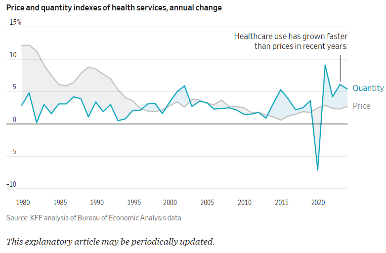 Healthcare utilization has grown faster than prices in the most recent years.
